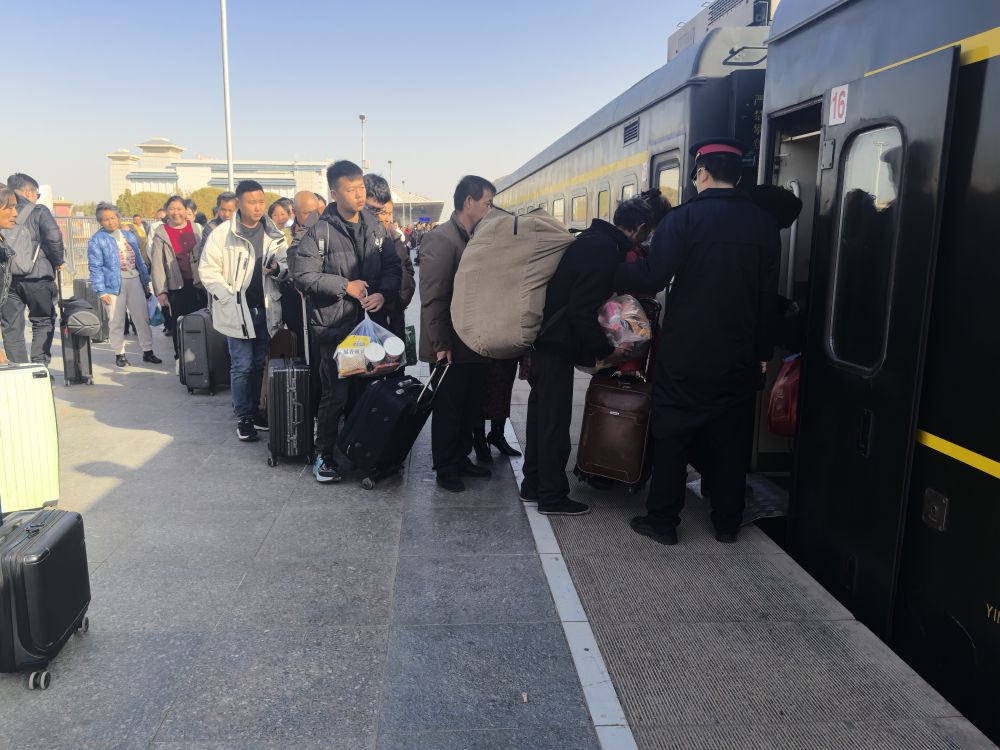南疆务工人员从阿克苏站进站搭乘K454次列车返乡。