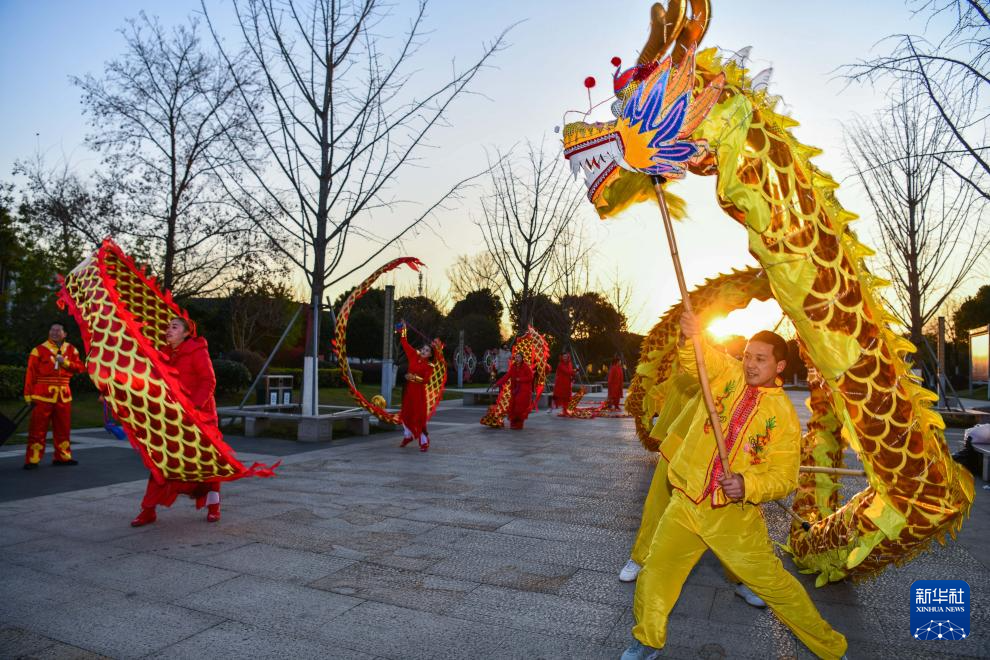 1月23日,在浙江省湖州市吴兴区织里镇利济文化公园,民间艺人在表演舞龙。