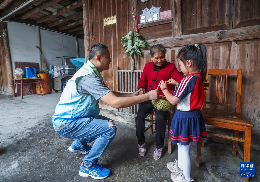 6月5日,志愿者上门给东白山村行动不便的老人送上端午节礼。