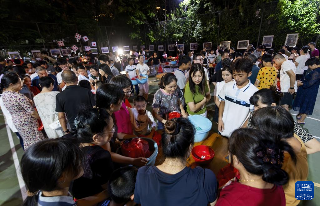 9月14日,在福建厦门一小区内,居民一起参加博饼比赛。