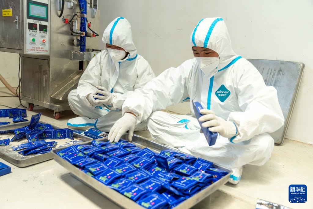 7月20日,革吉县一家粗盐加工厂工作人员在包装盐。