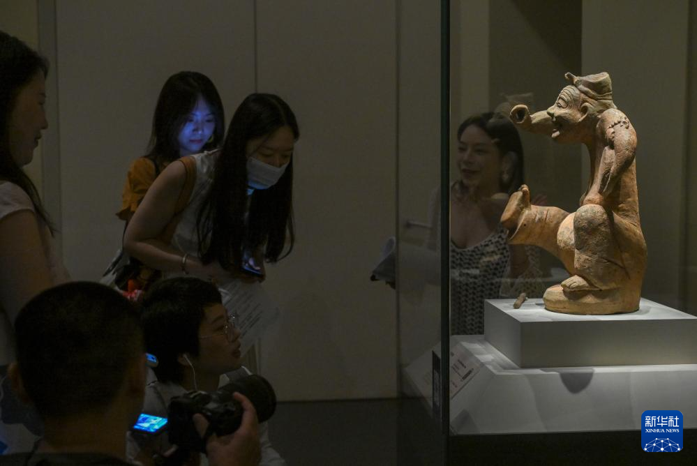 7月21日,人们在国博参观击鼓说唱俑。