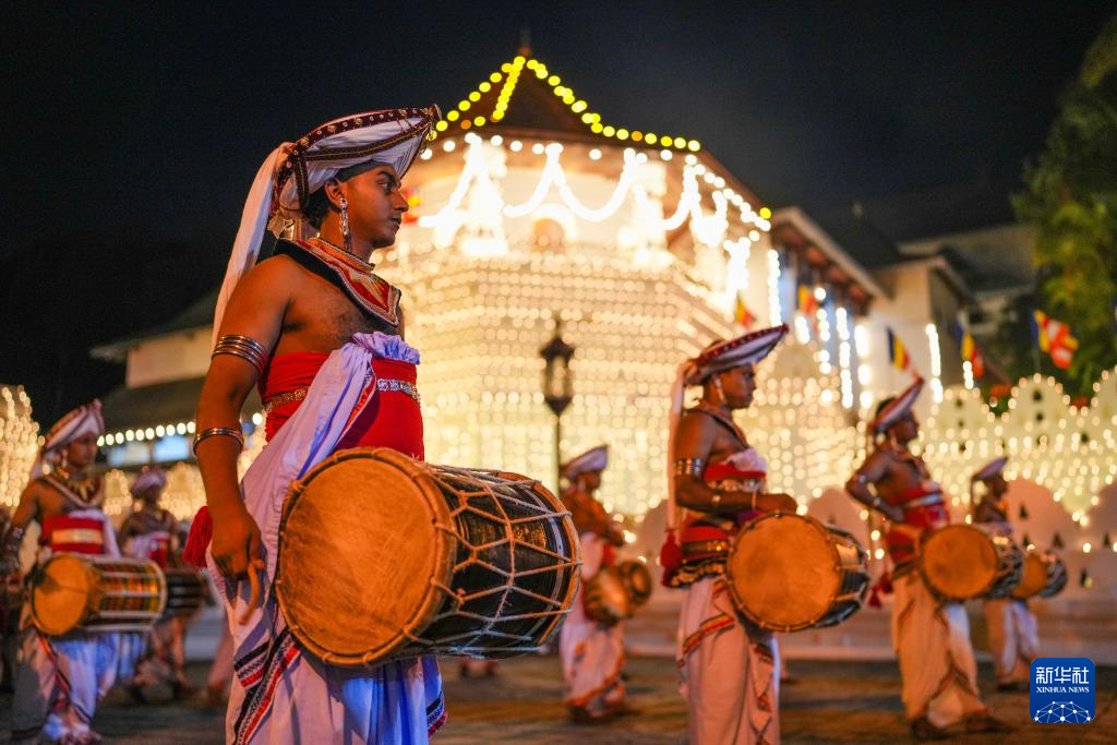 8月4日,在斯里兰卡中部城市康提,演员在佛牙节游行活动上表演。