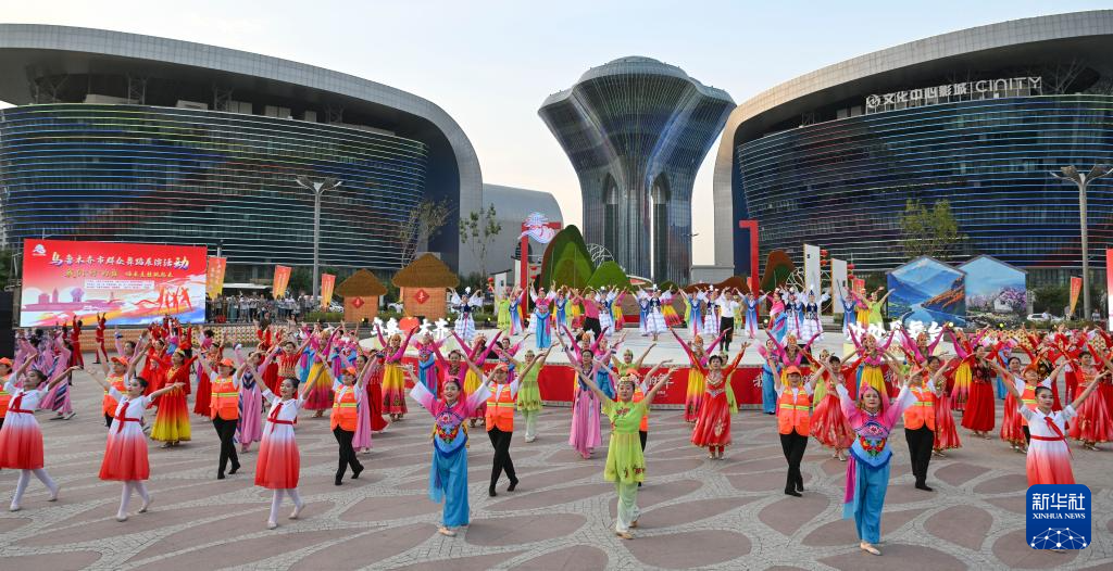 乌鲁木齐市达坂城区舞蹈队在“我们‘村’的舞”乌鲁木齐市群众舞蹈展演活动上表演舞蹈(7月28日摄)。新华社记者 胡虎虎 摄