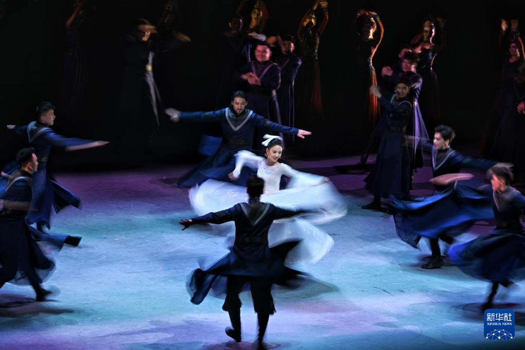 舞台中央,舞者一袭白裙翩然起舞,曼妙舞姿讲述游子对故土的深情。葡萄架下的欢笑、草场上的牧歌……光影交织中,天山南北的好风光在舞蹈诗剧《在远方 在这里》中一幕幕闪过。