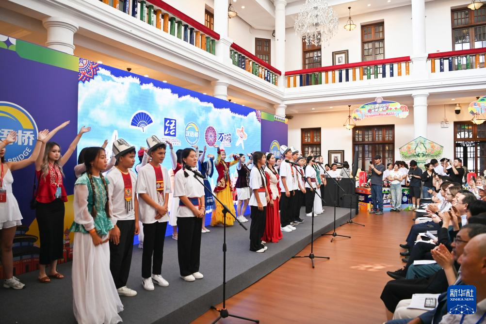 8月6日,上合国家青年学生共同表演歌舞节目。