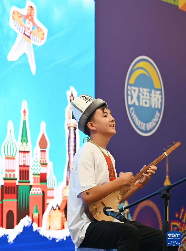 8月6日,上合国家青年学生在演奏乐器。