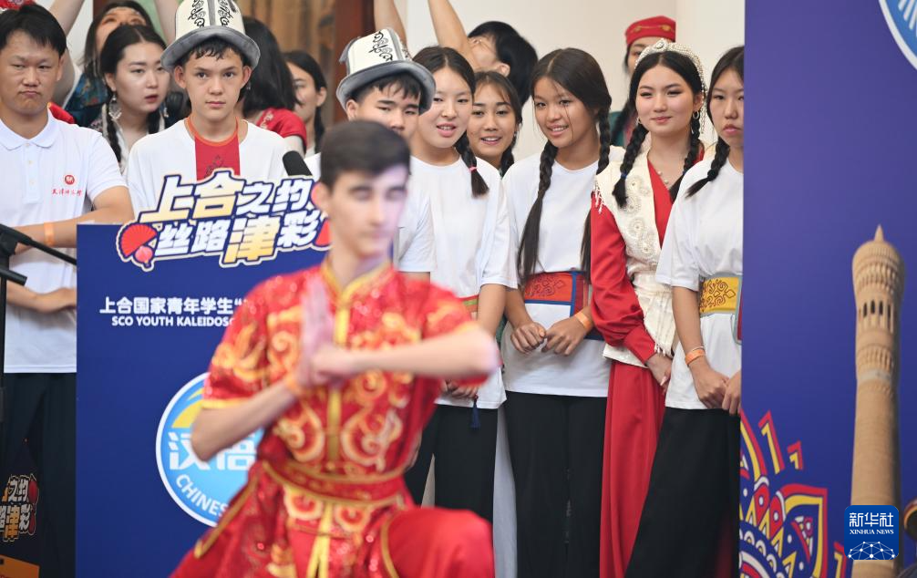 8月6日,上合国家青年学生在观看武术节目。