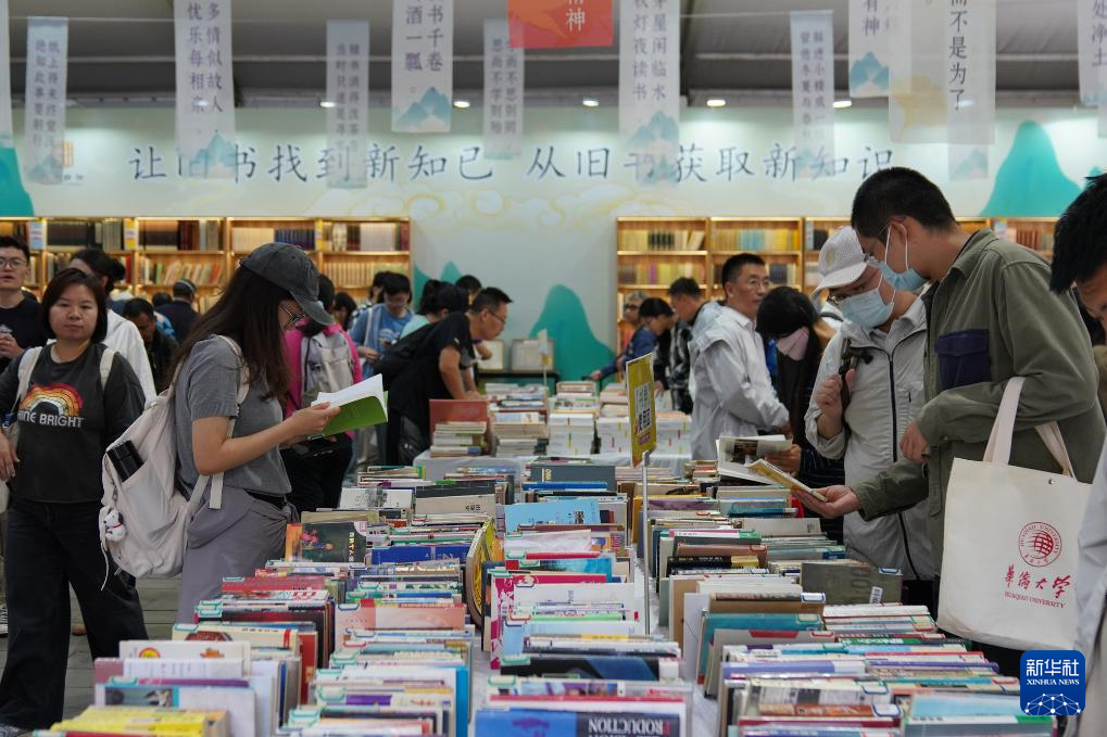 9月22日,市民在地坛书市“旧书新知”专区挑选书籍。