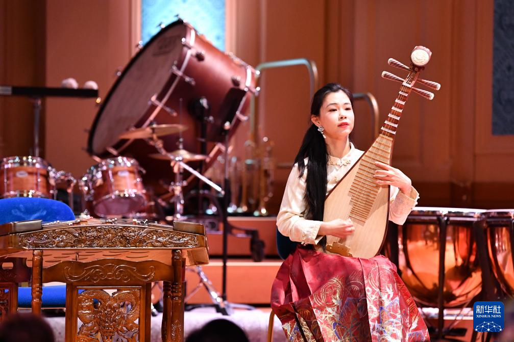 9月23日,在瑞士日内瓦,表演者在2025年“天涯共此时——中秋节”文艺晚会上演奏音乐。