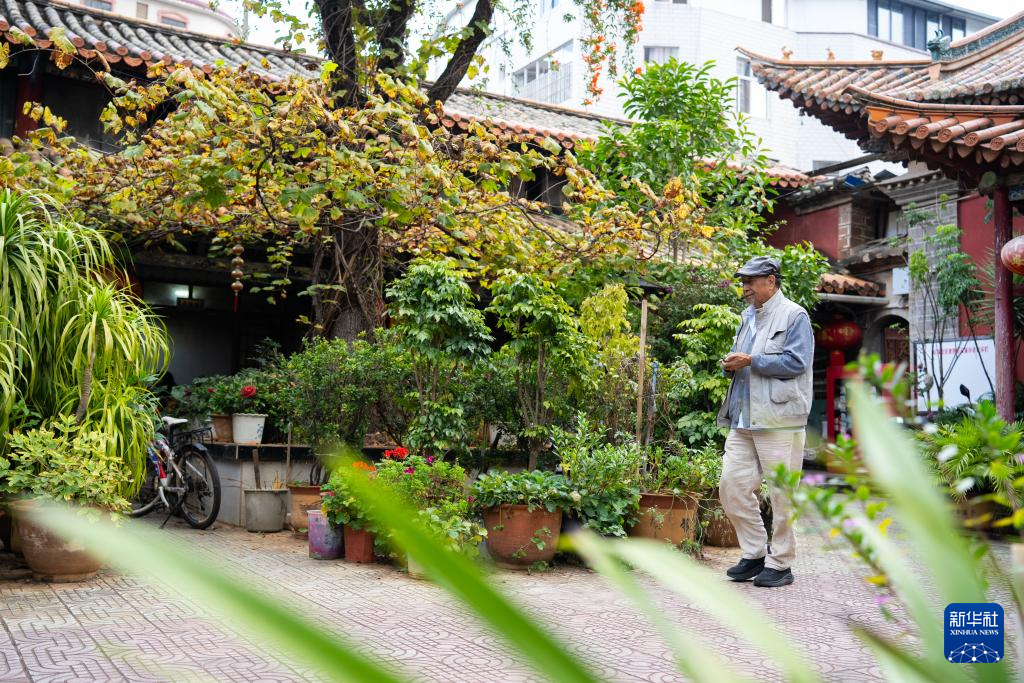 10月25日,金永才坐在昆明乌铜走银传习馆门口小憩。