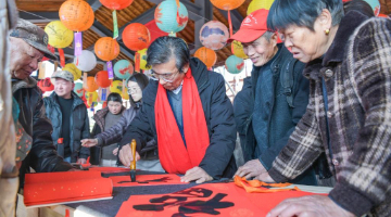 1月3日,参赛选手在哈尔滨冰雪大世界园区内进行冰雕创作(无人机照片)。