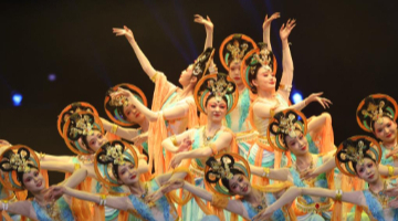 2026年1月9日,游客在甘肃敦煌观看大型洞窟沉浸式体验剧《乐动敦煌》。