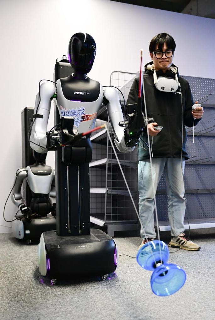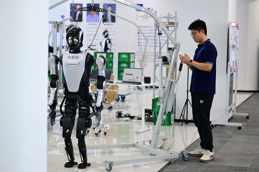 An engineer observes a humanoid robot grabbing a component at a laboratory of Leju Robotics in Hefei, east China's Anhui Province, Oct. 24, 2025. (Xinhua/Zhou Mu)An engineer adjusts a humanoid robot at a laboratory of Leju Robotics in Hefei, east China's Anhui Province, Oct. 24, 2025. (Xinhua/Zhou Mu)A staff member trains a humanoid robot to play Chinese diabolo (kongzhu) for data collection purpose at Zerith, a robotics company, in Hefei, east China's Anhui Province, Nov. 25, 2025. (Xinhua/Zhou Mu)An engineer installs battery for a humanoid robot at Leju Robotics in Hefei, east China's Anhui Province, Oct. 24, 2025. (Xinhua/Zhou Mu)A staff member trains a humanoid robot to fetch objects for data collection purpose at Zerith, a robotics company, in Hefei, east China's Anhui Province, Nov. 25, 2025. (Xinhua/Zhou Mu)A staff member trains a humanoid robot to fetch objects for data collection purpose at Zerith, a robotics company, in Hefei, east China's Anhui Province, Nov. 25, 2025. (Xinhua/Zhou Mu)An engineer runs a simulation program at Leju Robotics in Hefei, east China's Anhui Province, Oct. 24, 2025. (Xinhua/Zhou Mu)