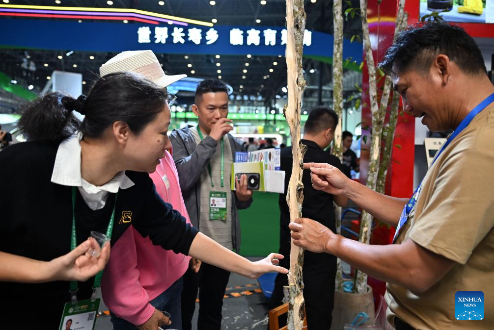 Visitors learn about agarwood at the 28th China (Hainan) International Winter Trade Fair for Tropical Agricultural Products in Haikou, south China's Hainan Province, Dec. 4, 2025. The trade fair opened here on Thursday. (Xinhua/Guo Cheng)