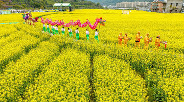 4月15日,在云冈石窟,身着传统服装的演员和游客互动。