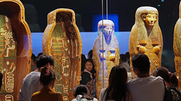 8月25日,观众在中国美术馆观看齐白石创作的《和平万年》。