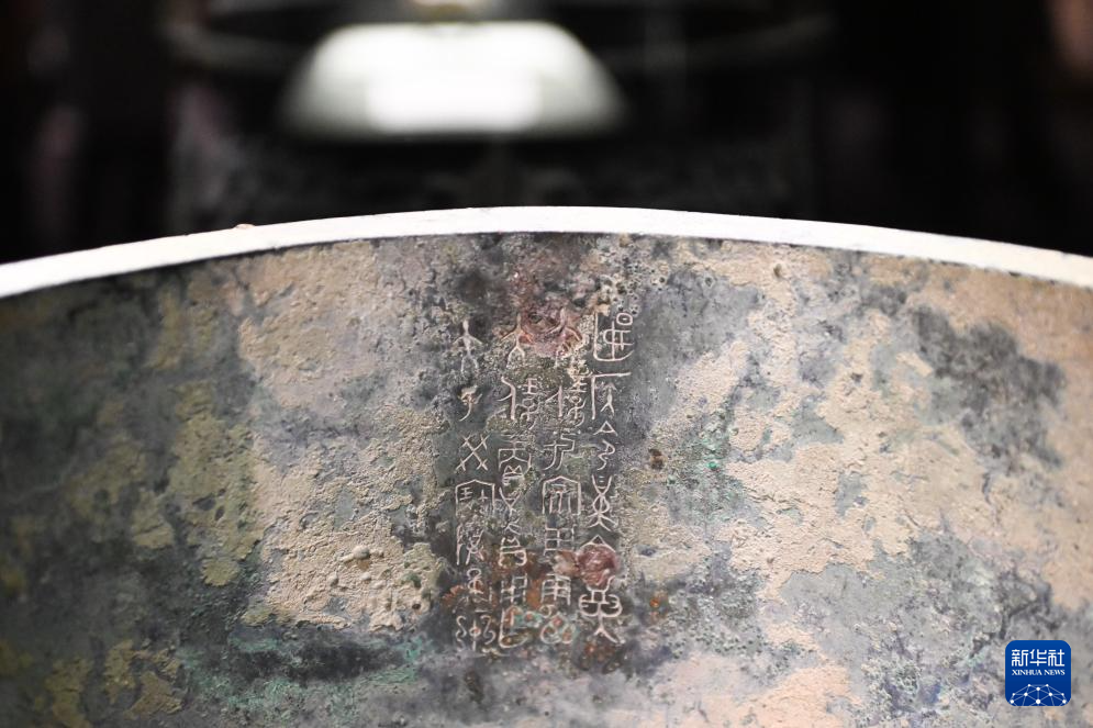 这是8月28日在展览中拍摄的堇鼎内壁的铭文。