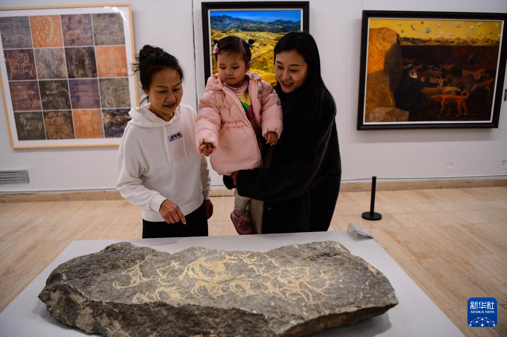 1月7日下午,“千里阴山·千古岩画”巴彦淖尔阴山岩画艺术展开幕式在北京中国美术馆举行。此次展出作品以内蒙古巴彦淖尔阴山岩画为创作主题,共征集到不同风格的油画、国画、水彩画、粉画、版画等艺术作品80余幅,另有拓片、阴山岩画原件和仿制品等20余件,展期至1月17日。