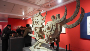 1月29日,活动参与者在现场了解生肖文化年节礼品。